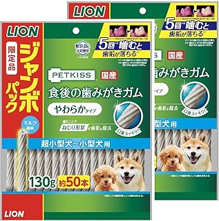 【Amazon.co.jp限定】ライオン (LION) ペットキッス (PETKISS) 犬用おやつ 食後の歯みがきガム やわらか ジャンボパック 130gx2袋 (まとめ買い)