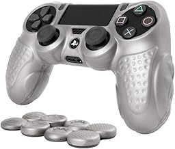 ps4 コントローラー カバー シリコン素材 ソフト スキンケース CHINFAI プレイステーション4 コントローラー対応 保護カバー 耐衝撃 簡単装着【アシストキャップ 8個付き】 (シルバー)