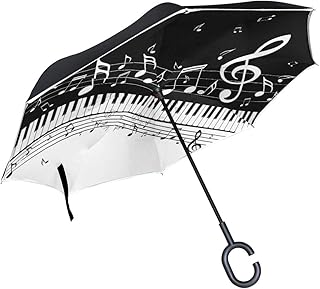 ミヤビヤ 逆さ傘 長傘 音楽柄 ピアノ柄 音符柄 逆折り式 ゴルフ傘 内側 うちがわ 雑貨