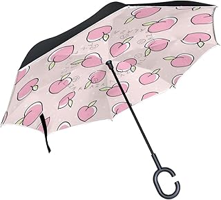 ミヤビヤ 逆さ傘 長傘 桃柄 もも柄 果物柄 特別 個性 個性的 大人 逆折り式 ゴルフ傘 内側 うちがわ 面白い おもしろい ぎゃく 雑貨