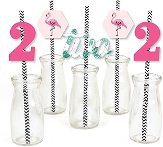 2歳の誕生日 フラミンゴ - パイナップルのようなパーティー - ペーパーストロー装飾 - 2歳の誕生日パーティー ストライプ 装飾ストロー - 24本セット