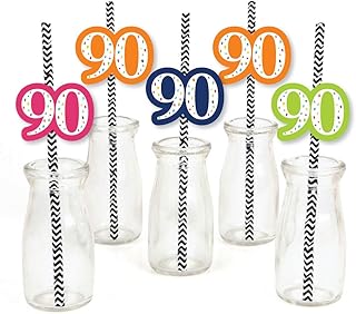 90歳の誕生日 - 陽気なハッピーバースデー - ペーパーストロー装飾 - カラフルな19歳の誕生日パーティー ストライプ装飾ストロー - 24本セット
