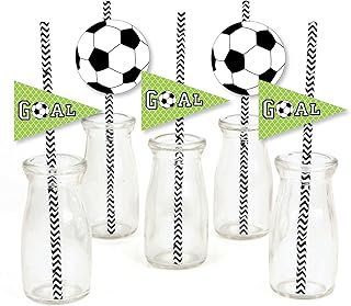 Big Dot of Happiness Goaaal サッカーペーパーストローデコレーション ベビーシャワーや誕生日パーティー ストライプ装飾ストロー 24本セット
