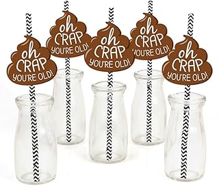 Big Dot of Happiness Oh Crap, You're Old - ペーパーストロー装飾 - うんちの誕生日パーティー ストライプ装飾ストロー - 24本セット