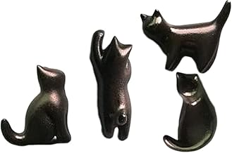 Fumemo 黒猫 マグネット 磁石 猫 ペーパーウエイト かわいい おしゃれ シンプル 動物 アニマル 冷蔵庫 壁 玄関 文房具 メモ カード クリップ マグネット式 クロネコ 4匹 セット