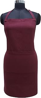 Airwill 100% Cotton Solid Pattern Free Sized Apron (Maroon, Pack of 1)