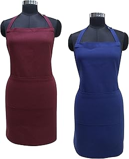 Airwill 100% Cotton Solid Pattern Free Sized Apron (Maroon,Blue, Pack of 2)