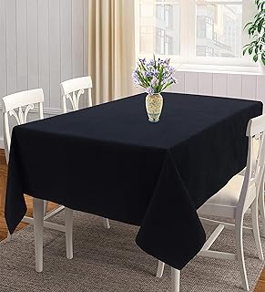Airwill 100% Cotton Solid Pattern 6 Seater Rectangle Table Cover Sized, 56x71 inches (Black, Pack of 1)