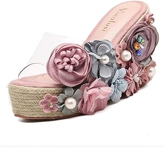 Godlovefull レディース スリッパ 厚底 花 美脚 ミュール サンダル ビジュー ウェッジソール シューズ 柄 透明 お呼ばれ 結婚式 パーティー 疲れない フェミニン フラワー リゾート 歩きやすい