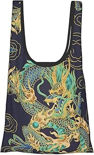 エコバッグ 龍 ドラゴン柄 トートバッグ 買い物バッグ 折りたたみ ショッピングバッグ コンビニバッグ レジカゴバッグ 再利用可能 肩から提げれる 大容量 防水で 軽量 収納 水や汚れにも強い 人気 おしゃれ 男女兼用 携帯便利